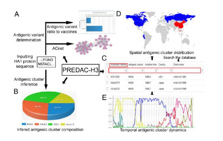 季节性流感病毒每年都会持续地感染人群,大约造成全球25~50万人的死亡,其中甲三型(H3N2)流感病毒是危害性最大的季节性流感。流感疫苗是防治季节性流感病毒最有效的“武器”。然而,该病毒突变很快,其抗原也频繁变化从而导致流感疫苗失效。为此,需要及时地找出发生抗原变异的流感病毒。